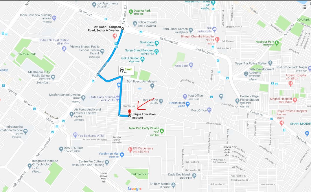 Reach sector 1 - Go straight till sector 6 red light - From red light turn left - Reach Ramphal Chowk J & K Bank - Go opposite side - Campus Showroom and Go Straight - 50 meter Unique Education Institute